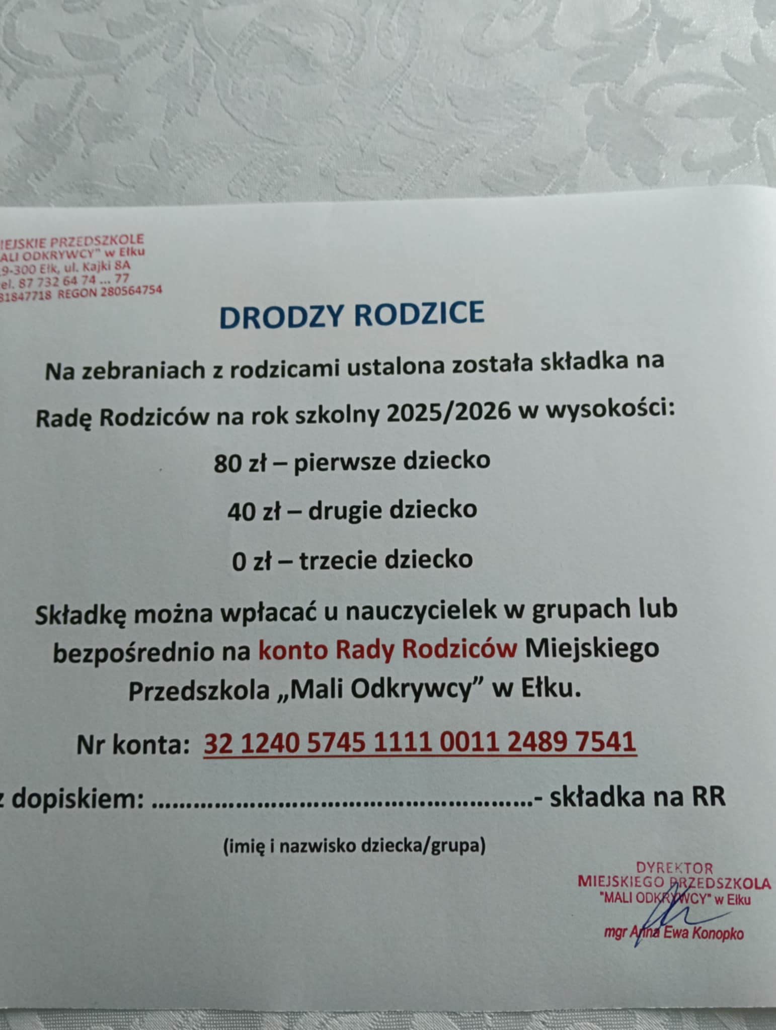 Drodzy Rodzice, od 01 września 2025r. zaczynamy nowy rok szkolny.