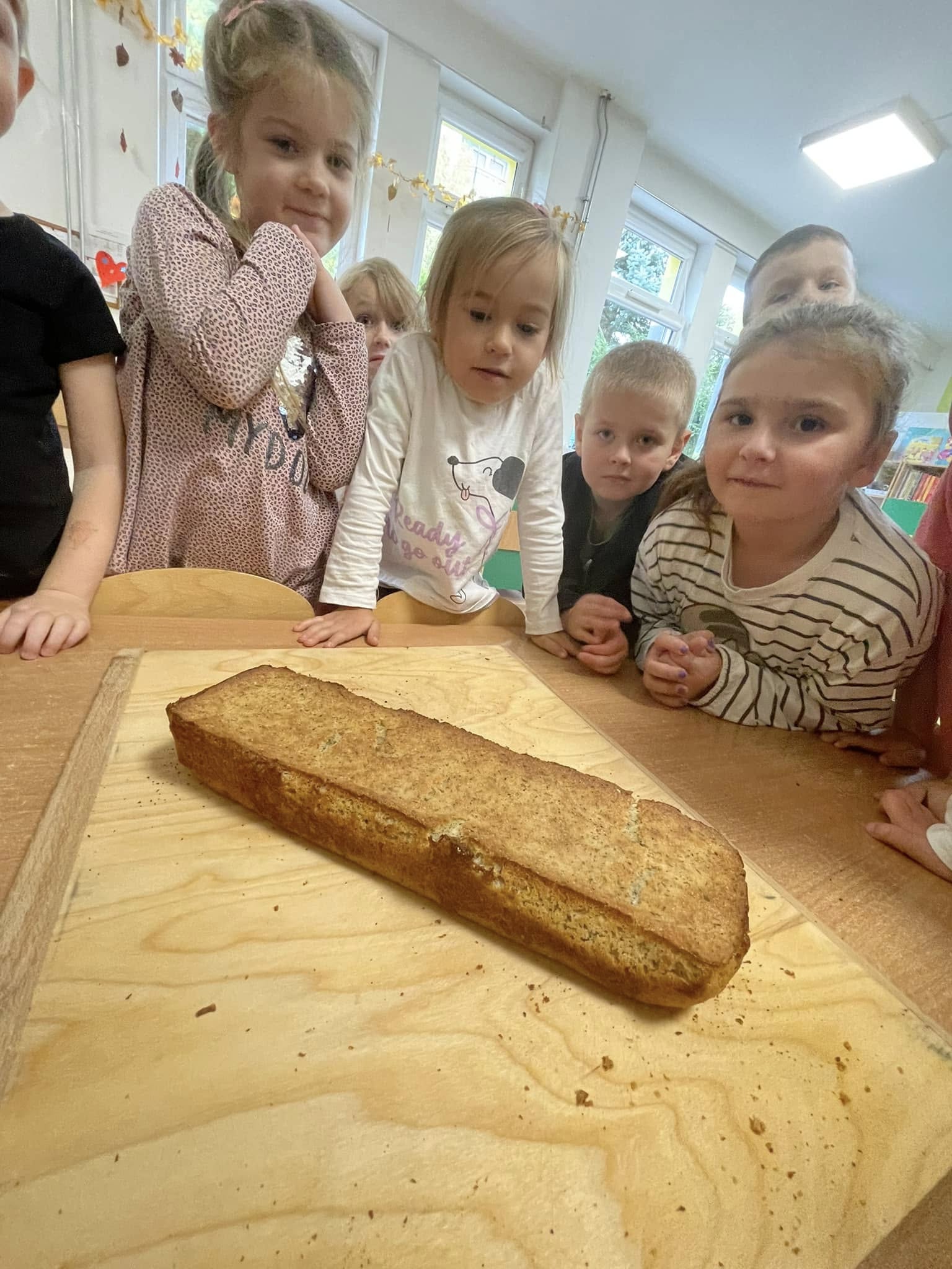 Najmłodsze przedszkolaki z grupy „Kropelki” zamieniły się w małych cukierników – wałkowały, wykrawały i piekły przepyszne ciasteczka z jabłkiem. Natomiast grupa „Podróżnicy” świętowała Dzień Chleba. Dzieci poznały tajniki powstawania chleba, własnoręcznie wyrabiały ciasto i z dumą obserwowały, jak w piecu rośnie ich wypiek – prawdziwy, domowy, smaczny i pachnący chleb!
