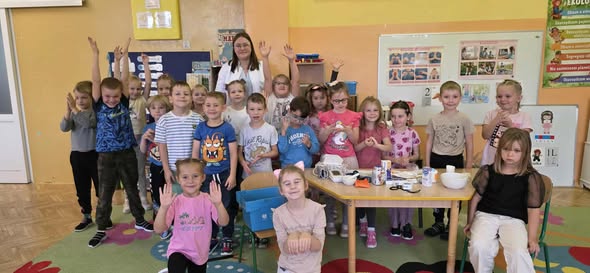 Tego dnia w każdej sali panowała wyjątkowo pogodna atmosfera, a na twarzach dzieci gościł szeroki uśmiech. Przedszkolaki uczestniczyły w różnorodnych zajęciach dydaktycznych, podczas których rozmawiały o znaczeniu uśmiechu w codziennym życiu – o tym, jak potrafi on poprawić nastrój, dodać odwagi i sprawić, że świat staje się piękniejszy. Dzieci z zaangażowaniem wykonywały prace plastyczne.