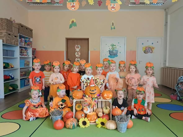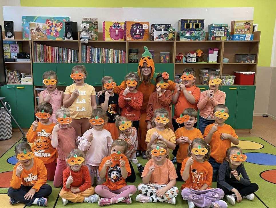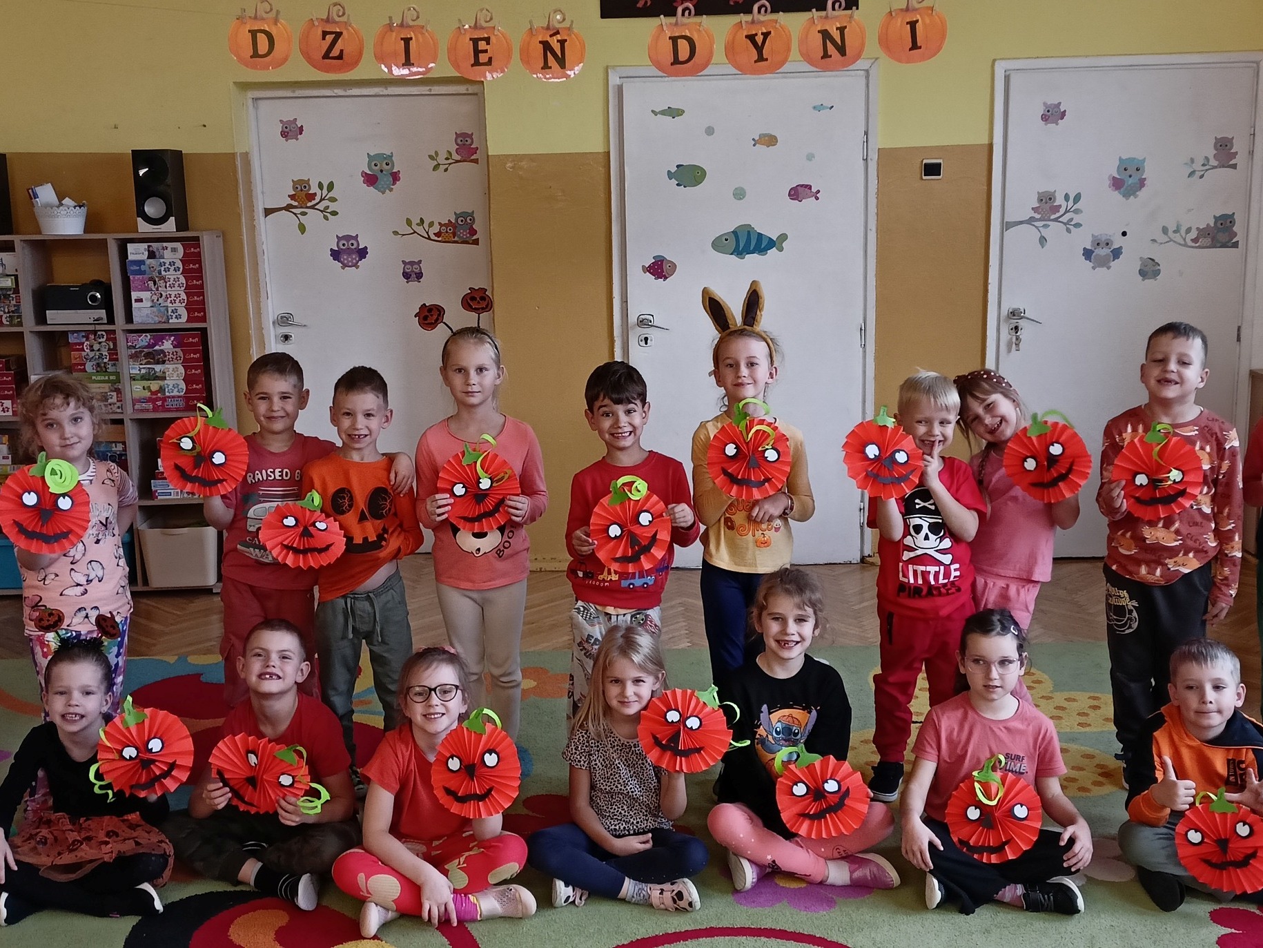 31 października w naszym przedszkolu odbył się Dzień Dyni – jedno z najbardziej kolorowych i radosnych wydarzeń jesieni! Tego dnia królował kolor pomarańczowy, a sale przedszkolne wypełniły się uśmiechniętymi dyniami, jesiennymi dekoracjami oraz zapachem pysznych potraw wykonanych podczas warsztatów kulinarnych. Dzieci uczestniczyły w zabawach dydaktycznych, muzyczno-ruchowych, a na zakończenie dnia wykonały prace plastyczne z motywem dyni.