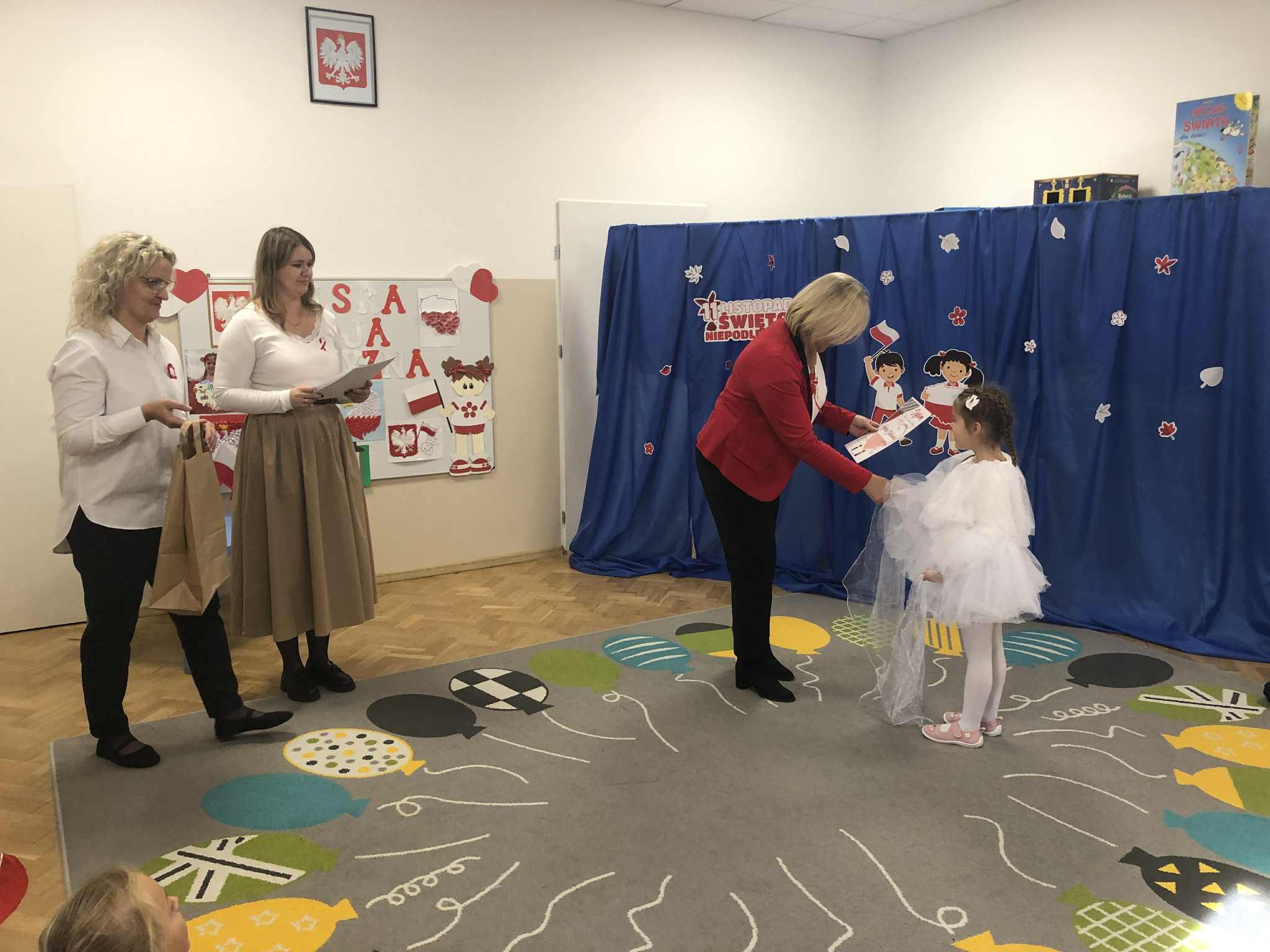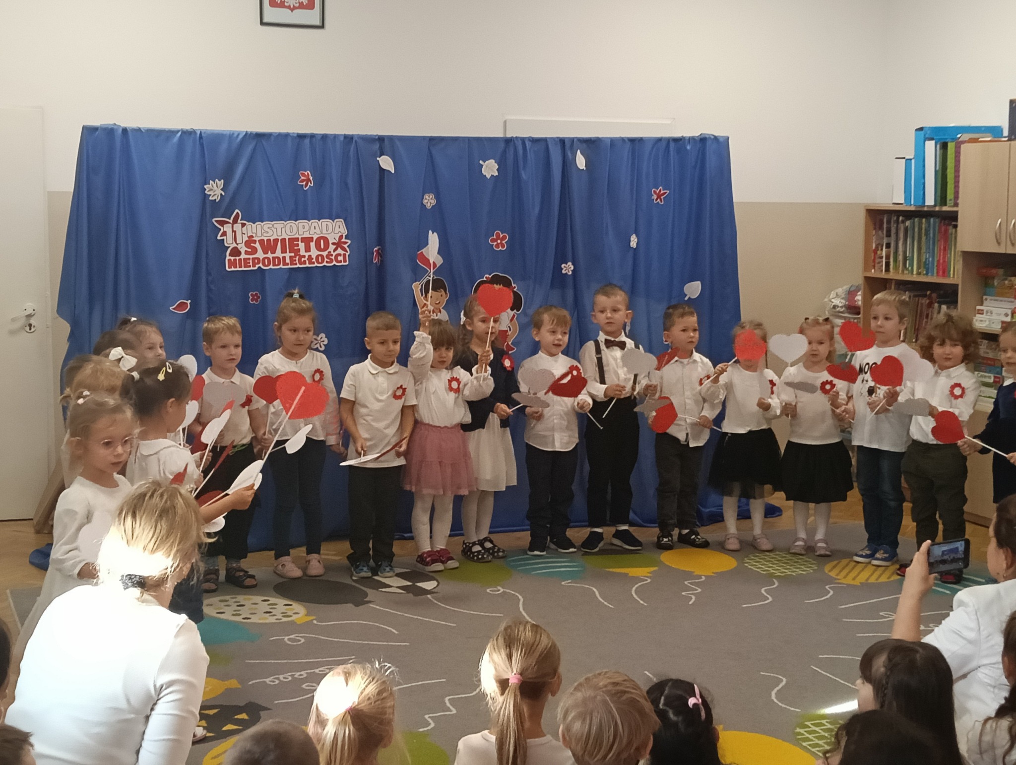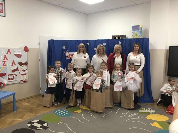 13 listopada obchodziliśmy w naszym przedszkolu Święto Niepodległości. Z tej okazji odbyły się dwa ważne wydarzenia: inscenizacja dla wszystkich przedszkolaków oraz rozstrzygnięcie wewnątrzprzedszkolnego konkursu plastycznego „Polska – Moja Ojczyzna”. W konkursie wzięło udział po dwóch przedstawicieli z każdej grupy, a komisja wyłoniła pierwsze, drugie i trzecie miejsce w dwóch kategoriach wiekowych: 3-4-latków i 5-6-latków. Pozostałe prace zostały wyróżnione.