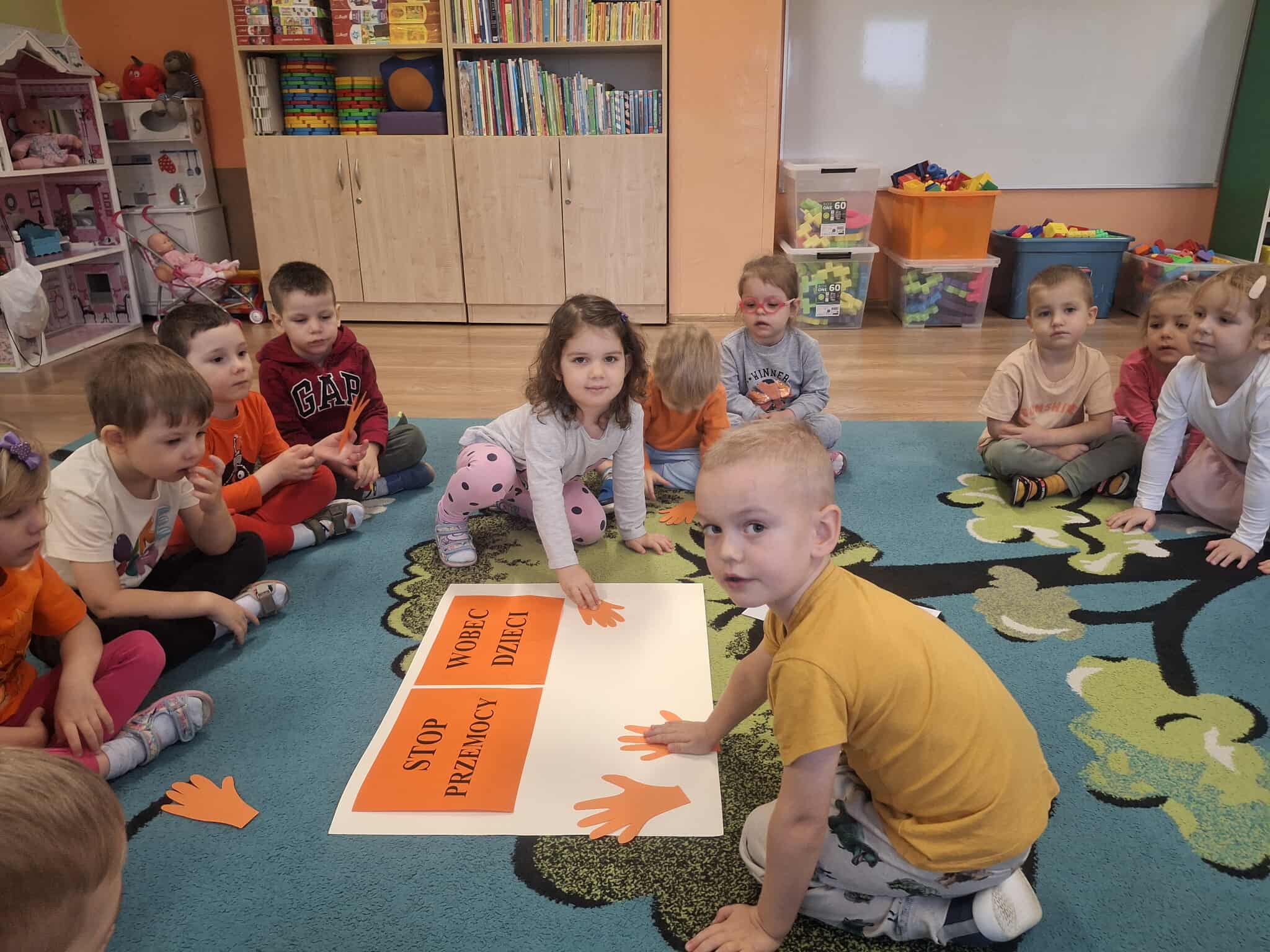 5 listopada grupę „Podróżnicy” odwiedziły Panie z Miejskiego Ośrodka Pomocy Społecznej w Ełku w ramach akcji Pomarańczowej Wstążki, poświęconej przeciwdziałaniu przemocy i promowaniu szacunku wobec innych. Podczas spotkania dzieci wysłuchały książki „Słowa mogą ranić”, która w przystępny sposób ukazuje, jak duże znaczenie mają nasze słowa i jak mogą one wpływać na innych.