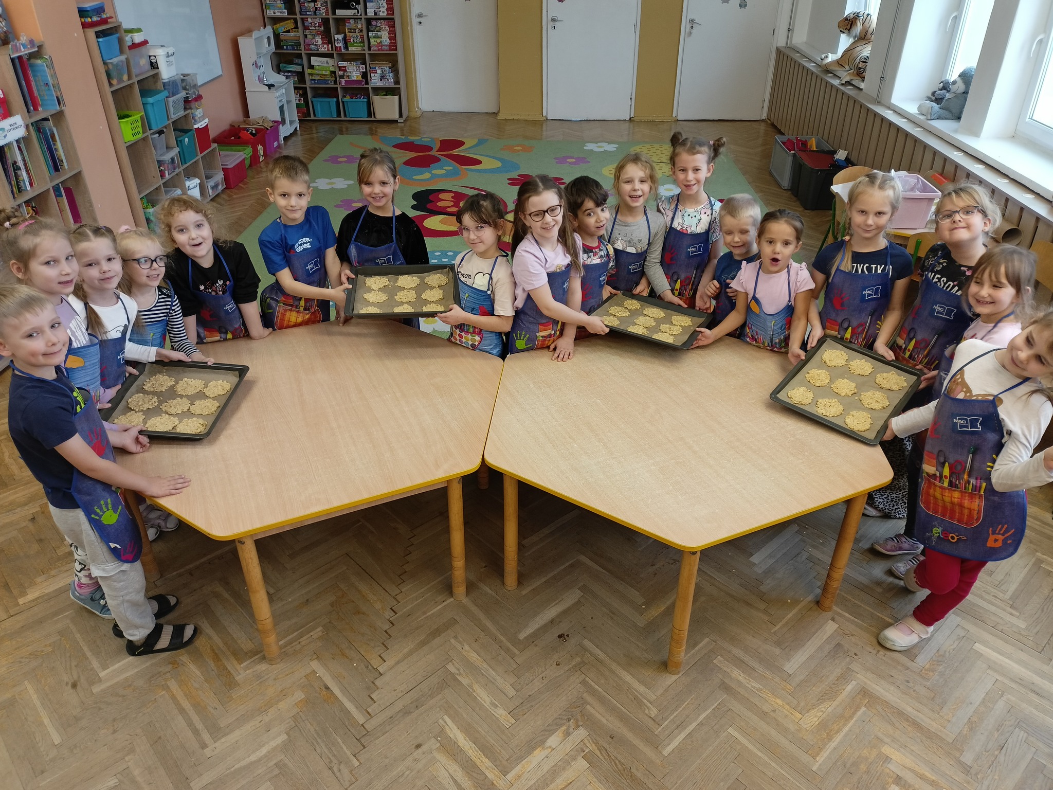 W ramach realizacji innowacji pedagogicznej „Gotowanie to wyzwanie – kulinarna przygoda przedszkolaka” dzieci z grupy Tygryski ponownie miały okazję zamienić się w małych kucharzy. Tym razem przedszkolaki przygotowały zdrowe owsiane ciasteczka.