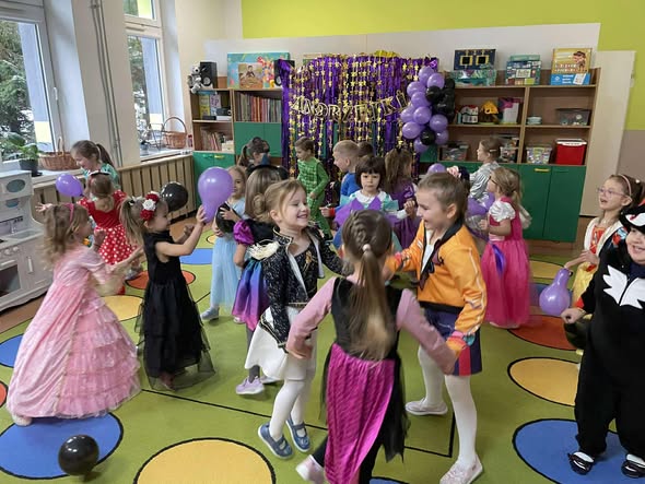 W ostatnich dniach listopada nasze przedszkolaki przeniosły się do świata wróżb, zagadek i niespodzianek, a każda z grup miała okazję poznać tradycyjne zwyczaje związane z tym wyjątkowym dniem. Dzieci z entuzjazmem brały udział w losowaniu symboli, karteczek z wróżbami oraz w zabawach ruchowych i tanecznych.